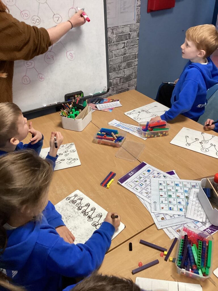In Maths, we have been working on representing 2-digit numbers. We have used our tens and ones to make numbers to 100, and then we used this knowledge to partition the numbers in lots of different ways.