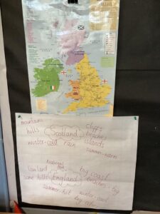 Our Geography has been learning about the UK. We have found out about the physical and human features of each of the four countries. Our map skills have hugely improved, and we have loved using atlases to find extra information.