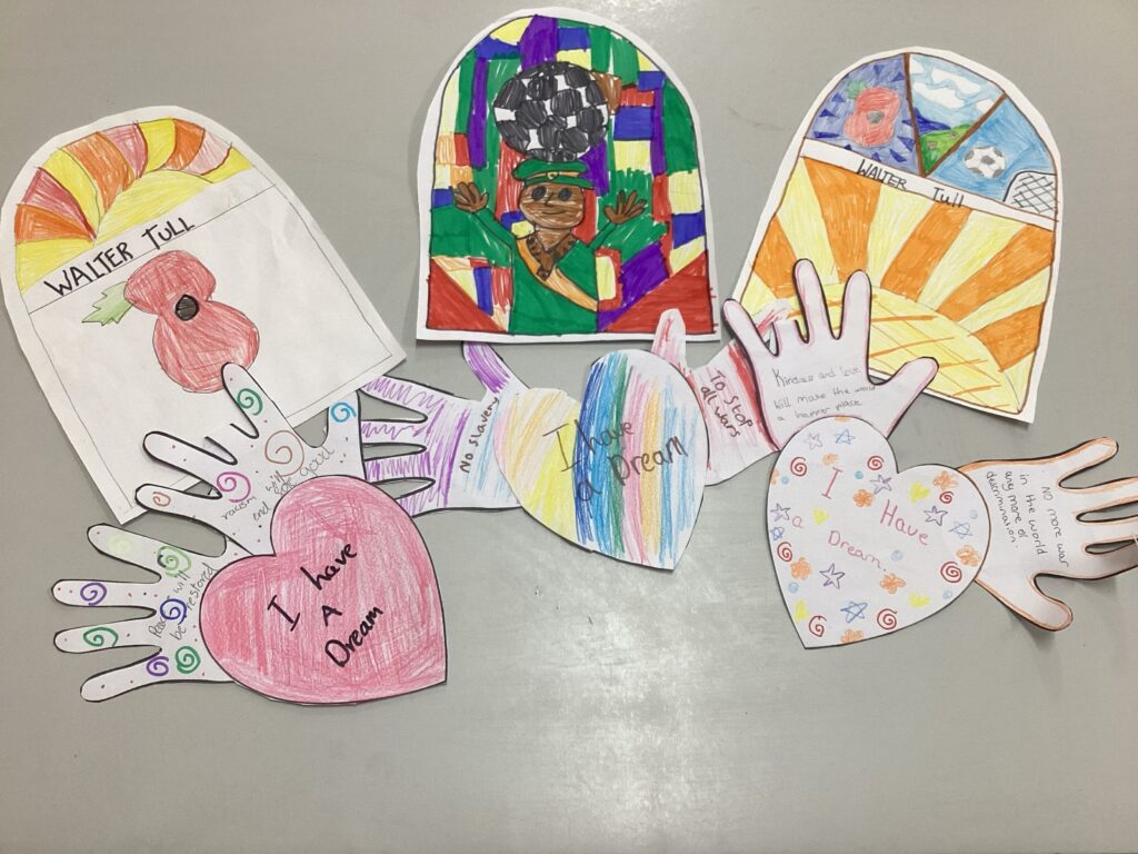 October was Black History Month, the theme ‘Standing Firm in Power & Pride.’ The children learnt about 3 different people who have stood firm for what they believe is right and their achievements including Martin Luther King, Claudia Jones and Walter Tull. Children created pieces of art as an expression of the achievements of these individuals.