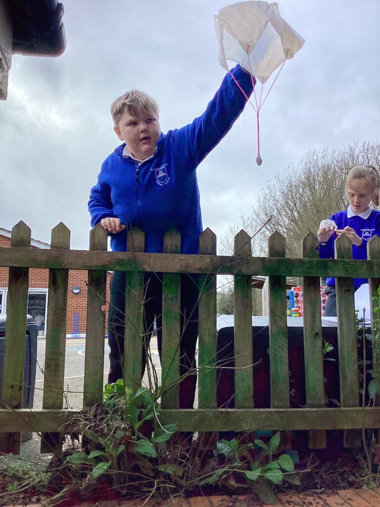 We have been testing air resistance and investigating which sized parachute had the most air resistance acting upon it.