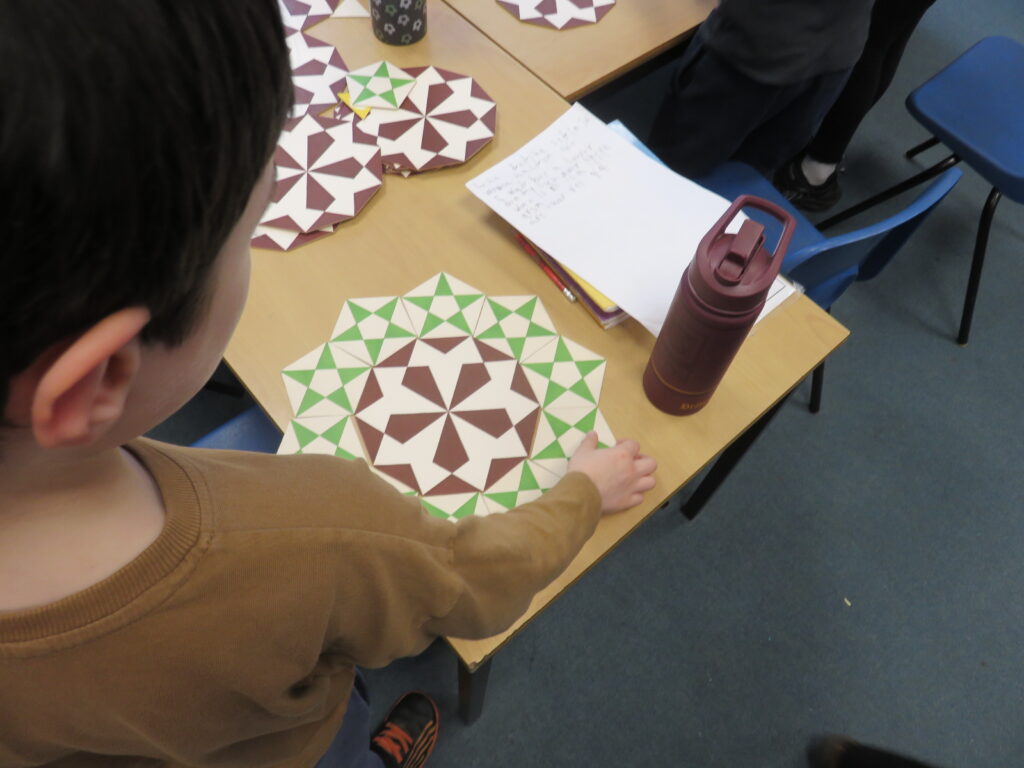We had a Maths Topic Day based on shape. As part of the day, we read the book ‘The Greedy Triangle’, explored tessellation, read coordinates on maps and investigated symmetry in nature.