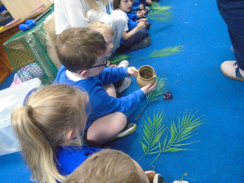 We found out about Diwali – The Festival of Light. We listened to the story of Rama and Sita and acted it out using props. We made diva lamps, rangoli patterns and mehndi patterns.